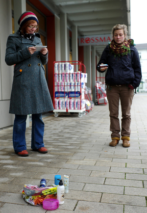Am Sonntag begab sich die Gruppe auf ihre erste Probestadtführung. Vor dem Handyladen wurde Bilder von Minenarbeitern im Kongo gezeigt und in Kontrast zur neuesten Produktwerbung gesetzt. Beim Reiseveranstalter ging es um grüne Golfplätze in der Wüste. Weiter zu einem Cafe, wo ein mit Schutzanzug bekleidetes Gruppenmitglied die Verwunderung der Vorübereilenden auf sich zog. Thema hier waren unter anderem Pestizide beim Kaffeeanbau. Auch Kosmetik und Fast Food wurden auf Herz und Nieren geprüft.