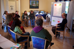 Als schließlich alle sehr informiert aber hungrig und erfroren waren, gab es bei der letzten Station im Bioladen heiße Suppe und gemütliches Ausruhen. Später im Hinterzimmer wurde dann ausgewertet und die Zukunft besprochen. Die ersten richtigen Stadtführungen sollten möglichst zeitnah und probehalber erst mal mit anderen Studenten durchgeführt werden.