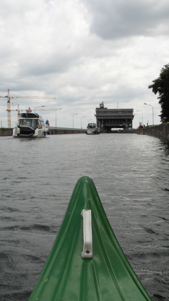 Nach unserer Fahrrad-Erkundungstour durch die nähere Heimat wollten wir nun auch mal wissen, wie das Ganze vom Wasser aus aussieht. Am 13. Juli starteten wir zu neunt mit vier Kanus vom Wassersportverein „Empor“ am Oder-Havel-Kanal in Richtung Schiffshebewerk. Was von Land aus eher langweilig aussieht (eine kilometerlange gerade Strecke), erwies sich durch den Uferbewuchs als ganz idyllisch, mit Ausnahme der Baustellen, an denen zur Zeit an der Verbreiterung des Kanals gearbeitet wird. Auch Baden war möglich, und kurz vor dem Schiffshebewerk entdeckten wir eine Himbeerpopulation, die von Land aus nicht zugänglich ist und deshalb in voller Pracht unseren Mägen und Vorratsbehältern zugute kam.