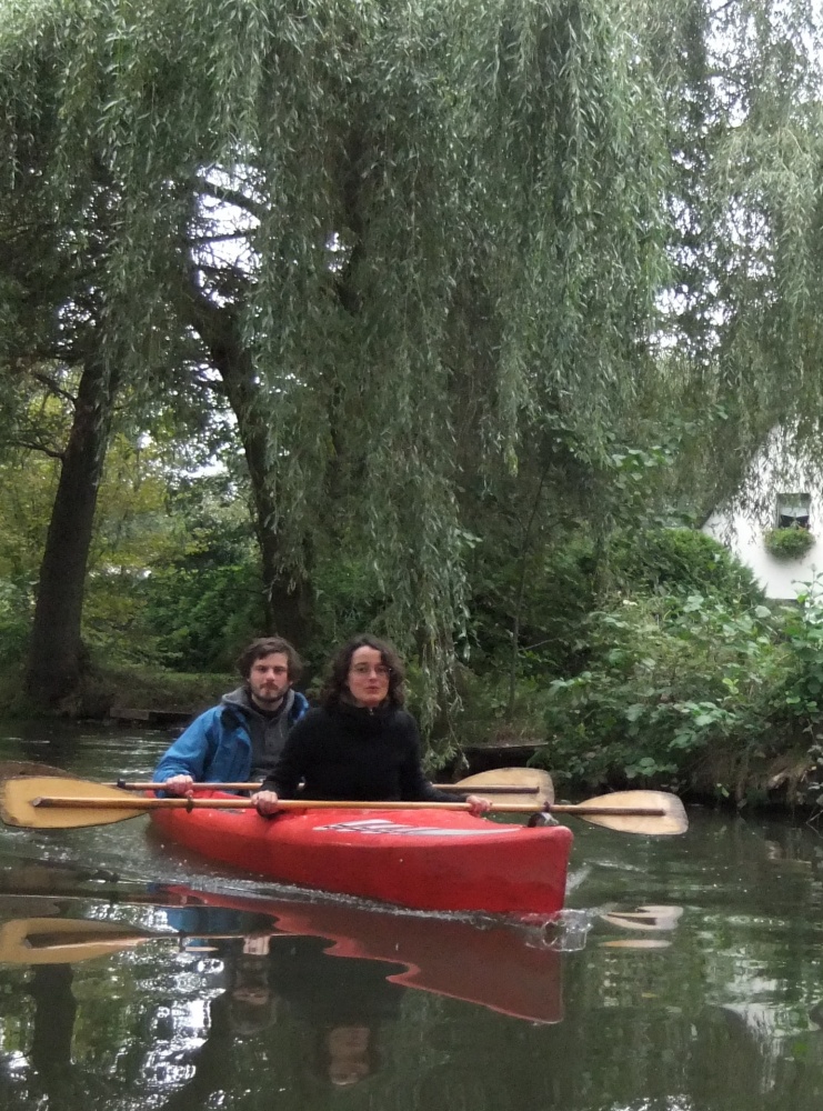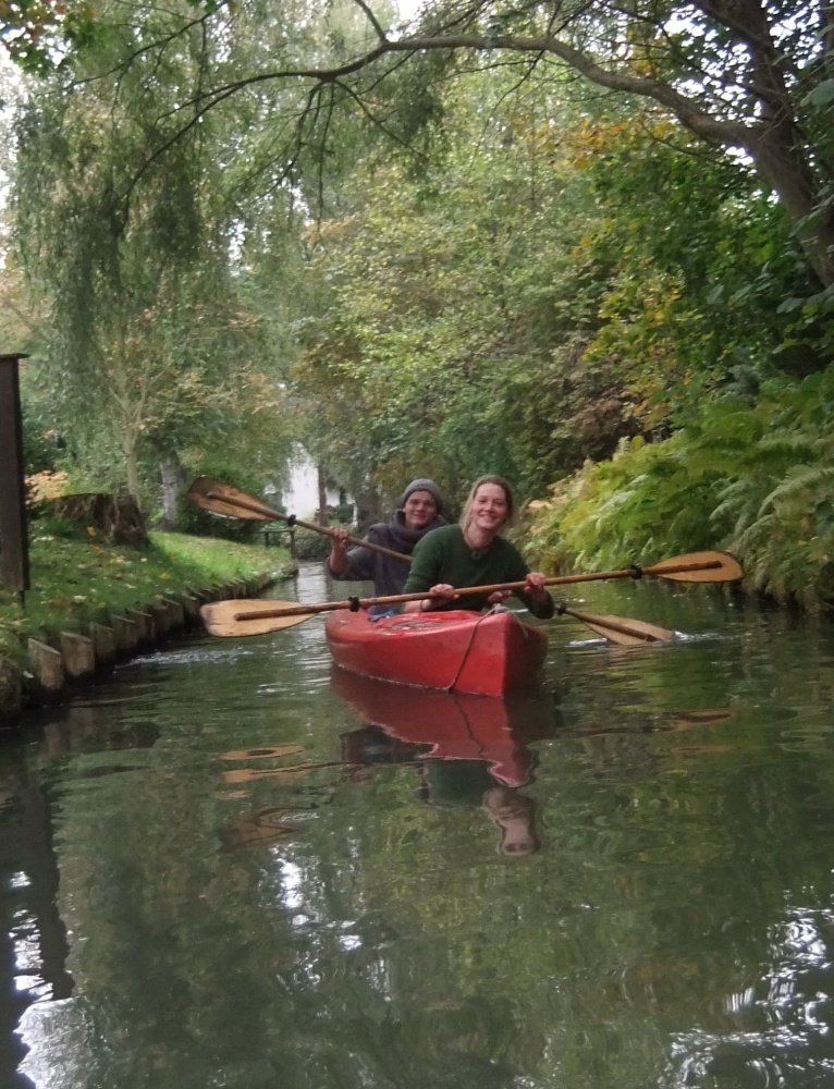 Nach dem erlebnisreichen Samstag, der mit einem Liederabend am Feuer seinen Ausklang nahm, ließen wir am Sonntag ersteinmal alle fünfe grade sein und standen spät auf. Nach einem ausgedehnten Frühstück erkundeten wir zwei Stunden mit dem Kajak die Umgebung, auf der Jagd nach echten Spreewälder Gurken. Wir fanden sie, schlugen zu und konnten zufrieden wieder zum Heuhotel und schließlich zurück nach Hause fahren.