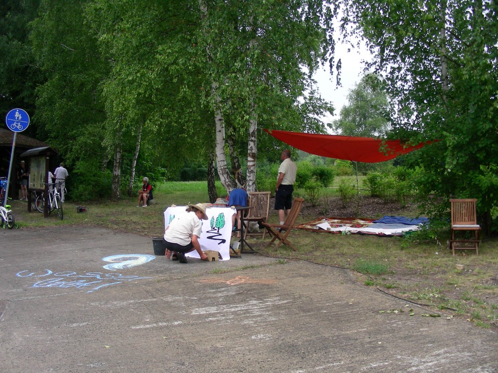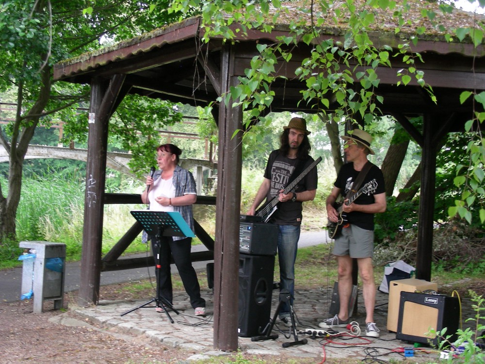 Die Bäckerei Dellinger hatte allerei regionale und biologische Köstlichkeiten aufgetischt, wohltuende Klänge der P&F Blues Company schallten über das Gelände und zahlreiche Freiwillige waren bereits ab 14 Uhr vor Ort. Dann gesellte sich der Regen dazu. Und wie es sich manchmal mit ungebetenen Gästen verhält, so blieb er dann auch und sorgte sicher dafür, dass einige Leute lieber zu Hause blieben als dem bunten Treiben am Finowkanal beizuwohnen.