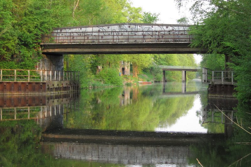 Ja nun, hier also auch mal was zum Finowkanal, weil wir uns dazu einfach auch mal äußern müssen. Also der Finowkanal. Der Finowkanal ist die älteste künstliche Wasserstraße Deutschlands mit der ältesten noch in Betrieb befindlichen Schleuse. Im Familiengarten gibt es die längste Bank und die größte Taschenuhr der Welt — lauter Superlative, die man im Trubel des Alltags gar nicht so wahrnimmt, aber, yeah, Bingo, das ist er, unser Finowkanal, alt wie ein Baum und immer noch für eine Überraschung gut. Hier ein paar Impressionen: